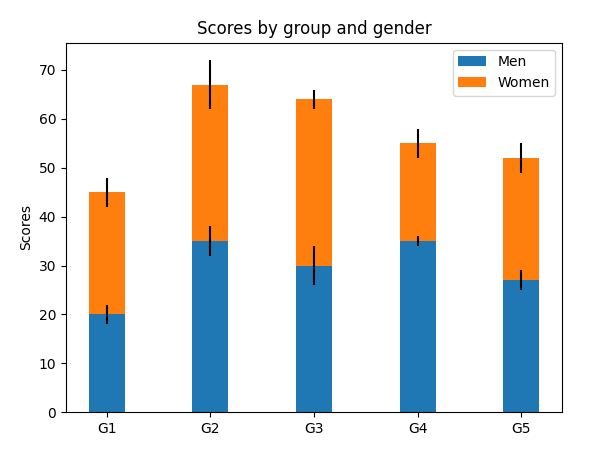 ax.bar(labels, women_means, width, yerr=women_std, bottom=men_means,