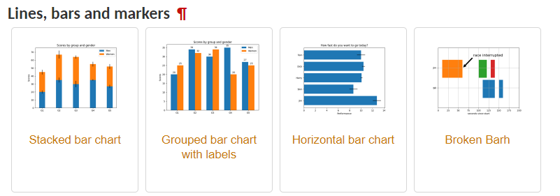 bar, scatter, line, histogram 등 다양한 feature를 보유하고 있으며 게시글 에서는 bar, plot 두개의 예시를 보이겠습니다.